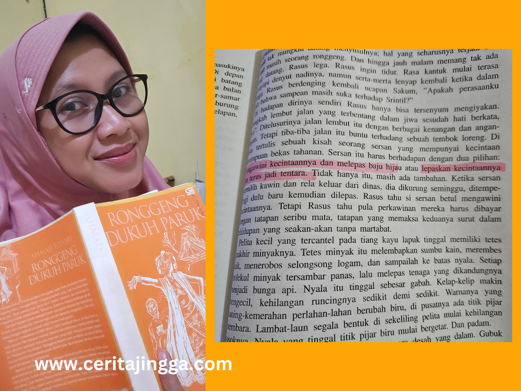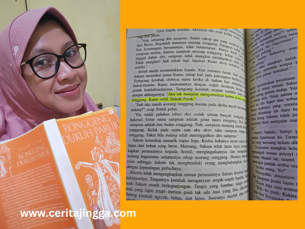 Yaa, sebuah Novel yang berjudul Ronggeng Dukuh Paruk. Sebuah Review buku Ronggeng Dukuh Paruk: Perjalanan cinta Srintil di tengah budaya sosial Pedukuhan Paruk. Saya memiliki buku yang edisi terbitan tahun 2003, jadi bukunya sudah lama yaa. Tapi, sekarang diterbitkan ulang koq oleh Gramedia, jadi kamu bisa membaca edisi cetakan terbarunya juga.